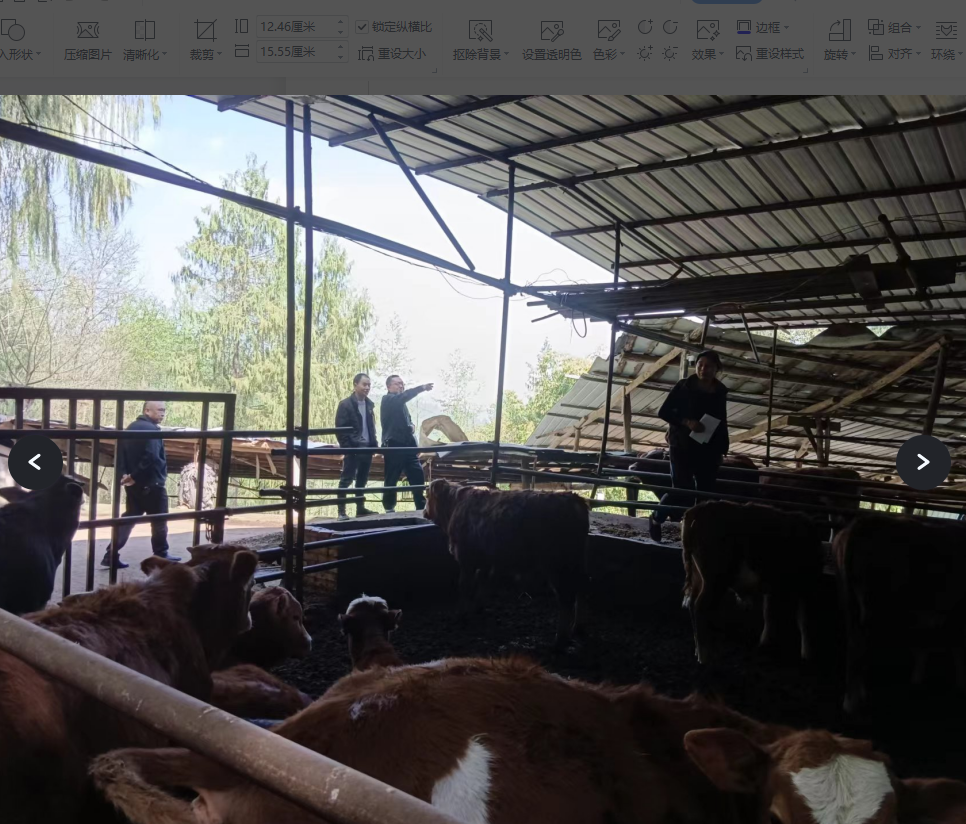 上图为云顶镇农业综合服务中心畜牧员杨海波指导石笋村何养成牛场架子牛育肥技术