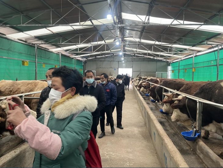 会前,现场观摩了箭杆村四川牛先生科技有限公司肉牛养殖基地,牛场负责人就养殖规模、市场效益、养殖经验等进行了交流。