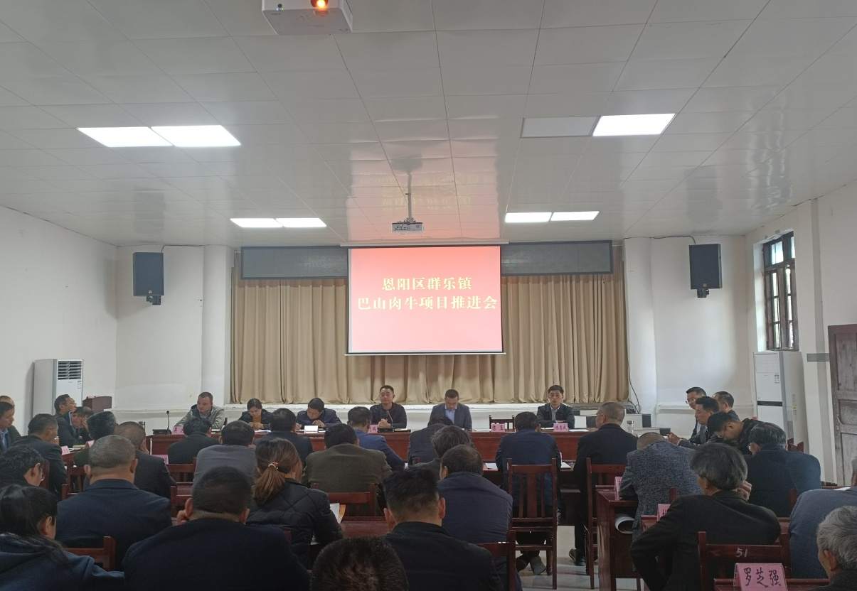 为认真贯彻落实市委、市政府“2+1”种养业优势大品种计划,加快推进巴山肉牛项目,做大做强群乐肉牛产业。3月28日,群乐镇召开巴山肉牛项目推进会。党委书记胡志鹏主持会议,班子成员、机关办所全体干部职工、各村(社区)“两委”常职干部、养牛大户参加会议。