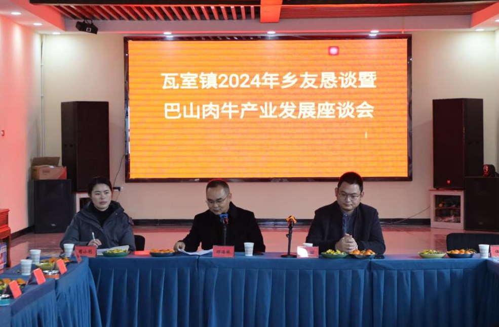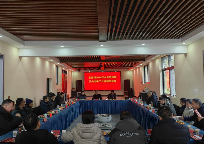 2月4日,瓦室镇召开2024年乡友恳谈暨巴山肉牛产业发展座谈会,镇党委书记邵海林、党委副书记李苗、瓦室镇农商银行行长周小艳、镇级有关部门负责人、各村(社区)优秀返乡创业代表及各村(社区)支部书记参加会议。