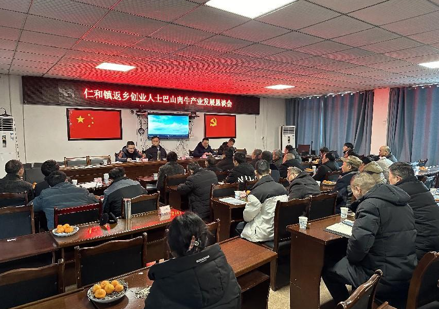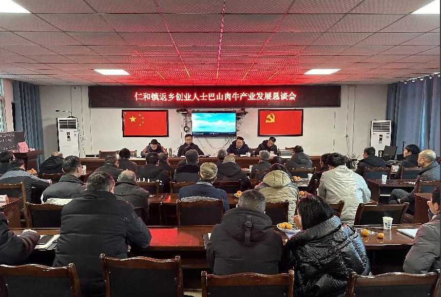 2024年2月5日,仁和镇人民政府召开返乡创业人士巴山肉牛产业发展恳谈会,会议由党委副书记、镇长岳巍同志主持,仁和镇党委书记严涛参加会议,并于乡贤代表沟通交流。本次会议邀请了2名企业家、7名返乡创业人士以及镇村干部共计38人参加会议。